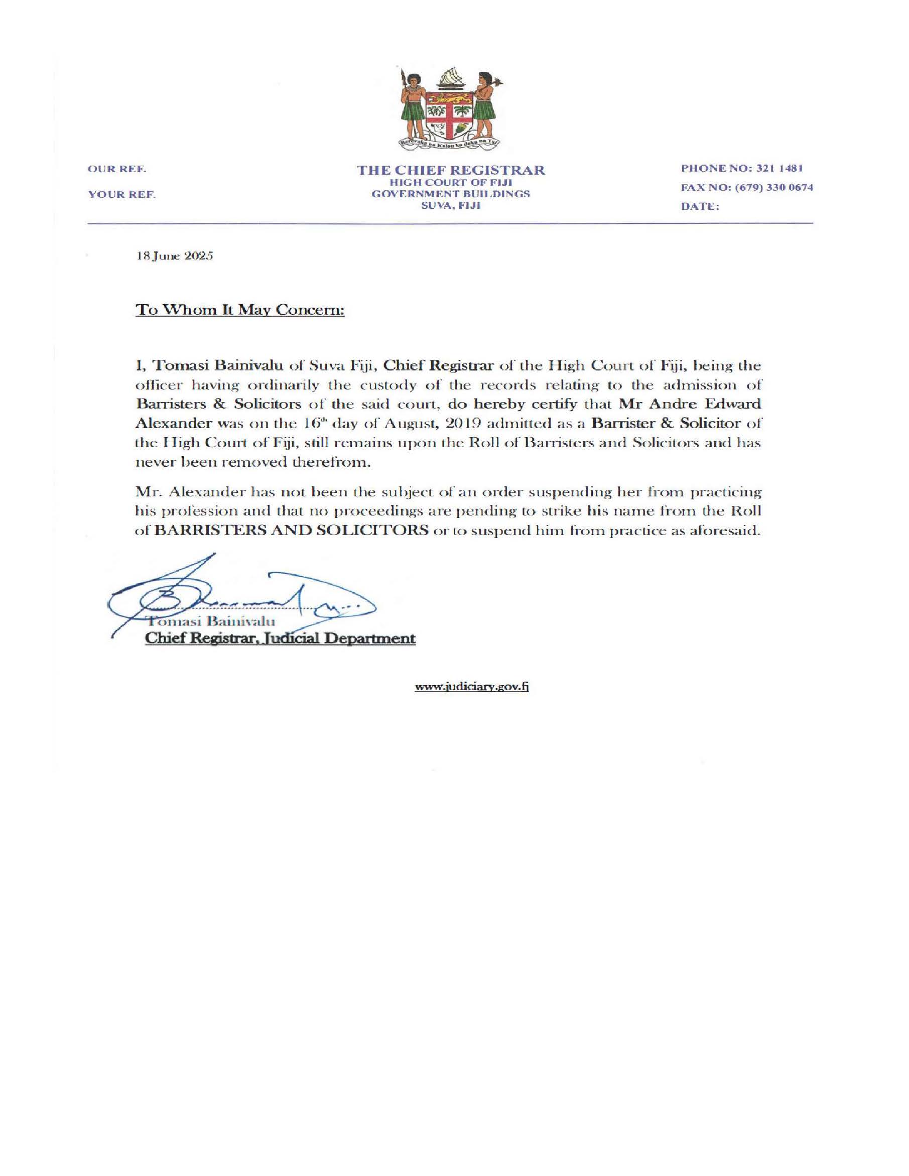 . Professional Diploma in Legal Practice (Bar Admission Program), University of the South Pacific .